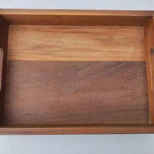 Beautiful artisan-made wood tray with side handles. Perfect for serving drinks, styling a coffee table, or adding farmhouse charm to your home.