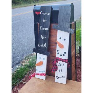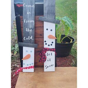 Handmade Wooden Snowman Porch Boards With Hat & Scarve