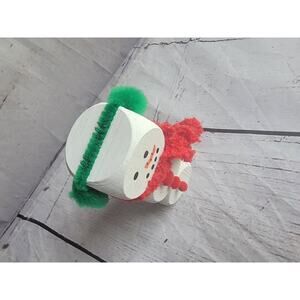 Handmade Wooden Snowman Winter Decor Shelf Tray Sitter Green Red Hand painted