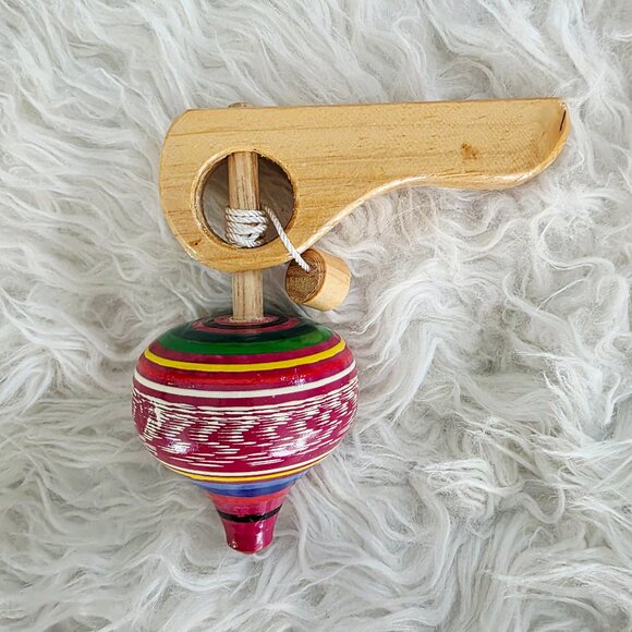 Handmade Wooden Spinning Toy from Mexico, Like New
