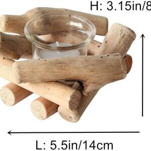 Handmade Wooden Tea Light Candle Holder with Glass Cup Rustic Country Coastal St