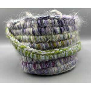 Handmade Wool Basket Purple Green Whimsical Cottage 10 x 5.5 Storage Decor