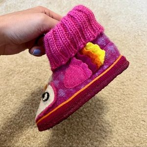 Toddler girl handmade wool slippers from Venice, I believe (my mother in law purchased them for my daughter on vacation abroad). Never been worn, brand new. Fit like a size 5/6 to me. Bundle and save!