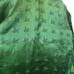 Feels like a wool outter or wool blend. Thick material. I would assume this is a hand wash only material. Interier lining is a very soft silk/satin material. Absolutely lovely for the eclectice or vintage outfit!!