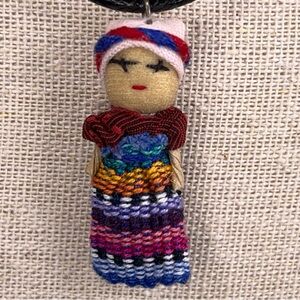 Handmade Guatemalan worry doll necklace