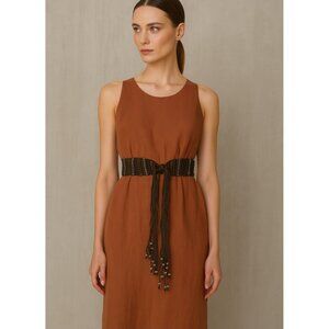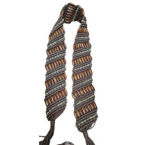 Handmade Woven Beaded Belt Sash Boho Tribal Ethnic Cord Tie Waist Vintage Style This handmade woven beaded belt sash is a vintage-inspired piece that embodies a bohemian tribal ethnic style. Crafted from cotton in a rich brown color, this original accessory from the 1980s is designed to tie at the waist and add a unique touch to any outfit. Perfect for women looking to add a touch of vintage flair to their look, this boho belt is sure to make a statement with its handmade quality and eye-catching design. ·        Length  36''  bandwidth 3''  Measurement is taken from the buckle point to the center hole.  Excellent pre-owned condition. As shown in photos. Color in photos may slightly differ from actual item due to lighting and/or screen setting The wearing photo is borrowed from the store. It’s in a different color, but it can serve as a reference for the silhouette. Reasonable offers are welcome! Any questions/concerns please state in direct messages.