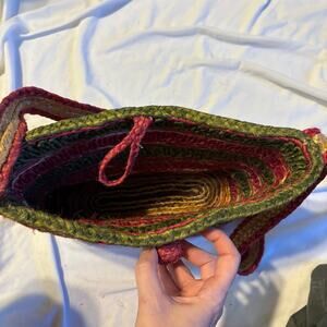 Handmade Woven Crossbody Bag Red Green Boho Shoulder Tote Artisan Pakistan 11x9