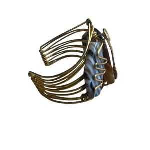 Handmade Wrapped Natural Stone Copper Wire Cuff Bracelet Bangle Agate