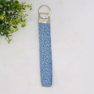 Handmade Wristlet Keychain Lt Blue Florals Stocking Stuffer 7.5 Inches