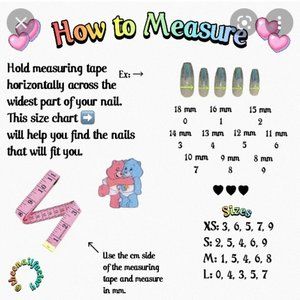 Comes with 10 nails, mini file, glue, stick on tabs, buffer.