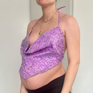 A show-stopping, ultra-glam Y2k-inspired top made from sheer mesh with dazzling sequin and bead embellishments. The soft cowl neckline adds the perfect flirty touch, giving major Bratz doll energy. A must-have for your next festival, rave, or night out!