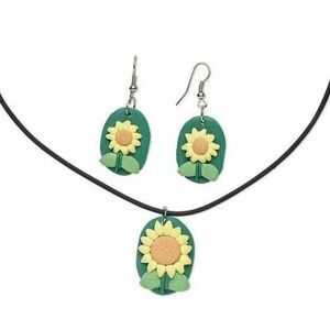 Handmade Yellow Sunflowers Fimo Polymer Clay Necklace Earrings Jewelry Set