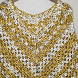 Stunning handmade crocheted poncho style sweater with an open weave.