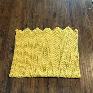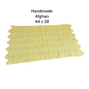 Handmade afghan 44 x 28 in a soft yellow hue. Perfect for adding warmth and style to any space.