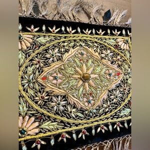 Handmade Zardozi Embroidered Wall Hanging Velvet Gold Tapestry 12x9 Indian Boho