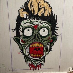 Tufted zombie head rug!! Extra pics from creation process. Decorative wall art!