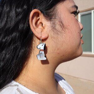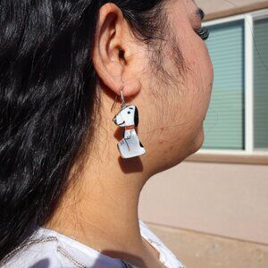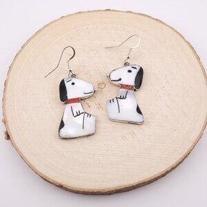 Handmade Zuni Inlay Large Snoopy Dog Dangle Earrings Sterling Silver Jewelry **
