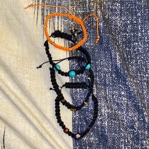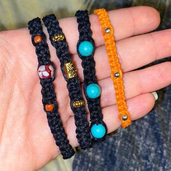 Handmade adjustable bracelets made from hemp and plastic and glass beads. 1 for $7 2 for $12