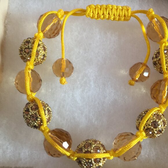 Handmade and crafted Yellow Beaded Shamballa Bracelet with yellow cord.