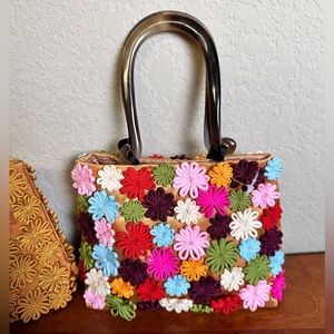 Handmade artisan flower handbag with horn handle