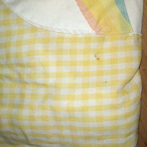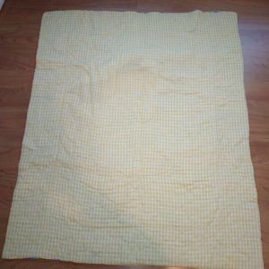 Baby Blanket with an image of a baby stroller with wheels that flip up or down. This is a little larger than a crib matress. It is a quilt with inner quilt batting. There are very minor defects shown in the last 3 pictures. Small discolorations and very tiny snags. Smoke/pet free.