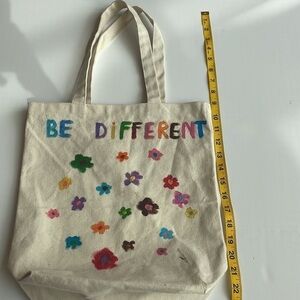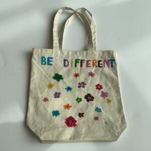Thick canvas tote painted with flowers