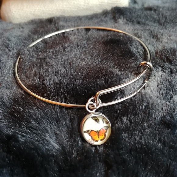 Beautiful handmade stainless steel bangle bracelet with 10mm charm.