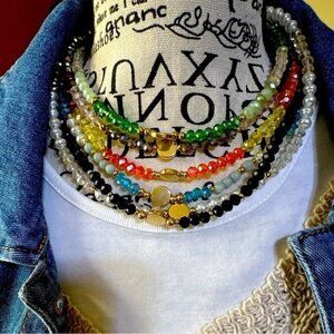 Handmade beaded necklace Colorblock Aventurine short colorful crystals