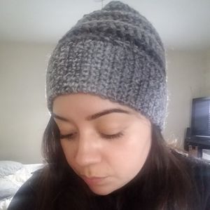 Handmade crochet beanie. Can be worn with ridges or without (reversible). I would gladly add a puff if requested :) brand new, never been worn just finished making it. I'll take color requests 😊
