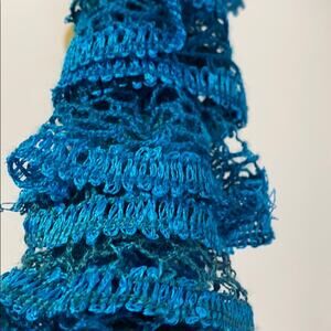 Add a touch of handmade charm to your wardrobe with this beautiful blue ruffle scarf! This unique scarf features a lovely ruffled design and a soft, comfortable feel. Perfect for adding a pop of color and texture to any outfit. Whether you're dressing up for a special occasion or simply want to elevate your everyday style, this scarf is a wonderful choice. Don't miss out on the opportunity to own this one-of-a-kind accessory!