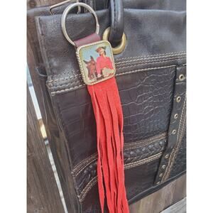 Handmade boho Leather Fringe Western bag charm, Long keychain purse charms