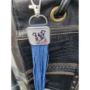 Handmade boho Pitbull lover Leather Fringe Western bag charm fringe keychain