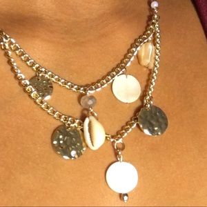 Handmade gold charms, shells, beads. Super cute boho inspired beach, casual, necklace
