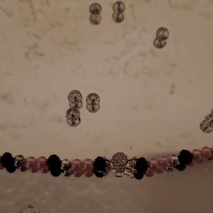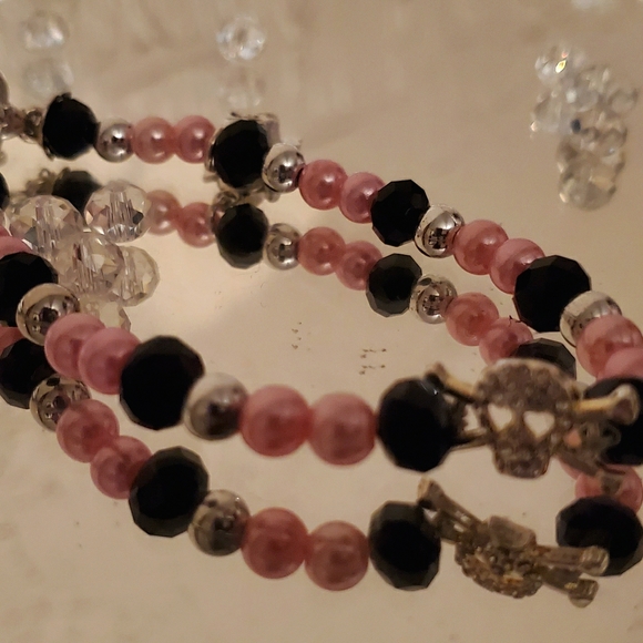 Pink black and silver skull bracelet very cute