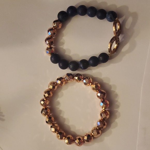handmade bracelets with midnight blue and rose gold beads and infinity charm