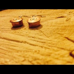 Dangle style earrings hanging from a fine chain. Bullet caliber is 7.62x54r and is similar in diameter to a dime