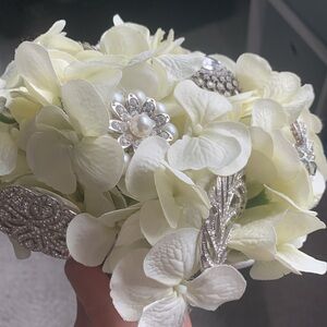 Handmade brooch, wedding bouquet, ivory, and rhinestones