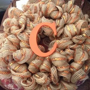 Handmade, customized burlap wreath. Can be customized to your liking.