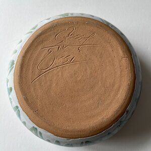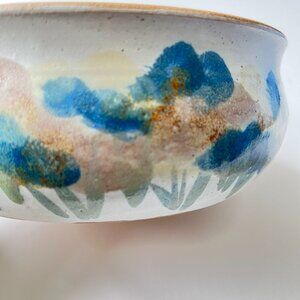 Really pretty bowl handmade ceramic bowl with floral design. Can be used as a decorative or serving piece. Measures 7.5 inches across the top.