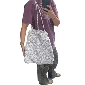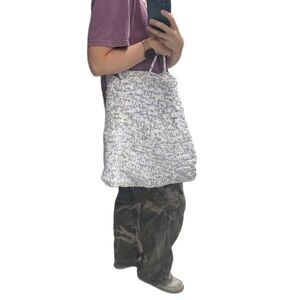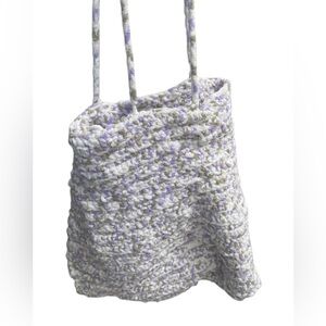 Handmade chenille boho hobo slouch satchel shoulder tote bag purple and white