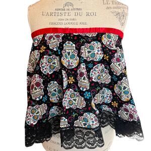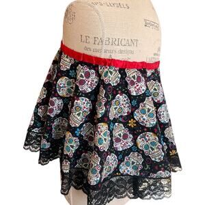 Handmade circle skirt - day of the dead sugar skull pattern, versatile wear