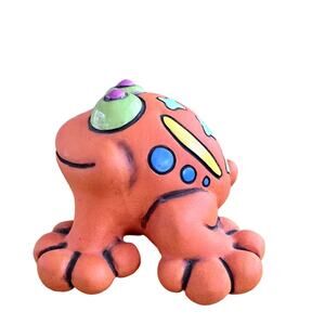 Handmade clay frog toad orange painted made in Ecuador
