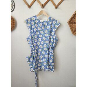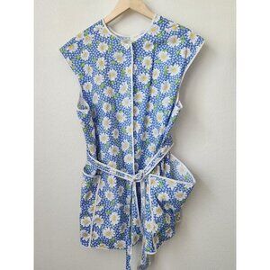 Handmade clothesline apron blue daisy print homemaker old fashion OS