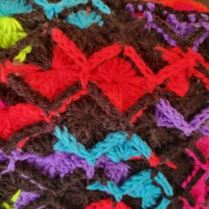 16 inch hand crochet reversible pillow. Crocheted in a Bavarian pattern with neon and black yarn. Yarn is 100% acrylic yarn. Pillow can be machine washed on gentle cycle and air dried