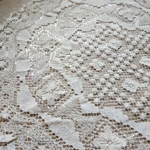 This is a beautiful, handmade crocheted doily. It measures 27.5 x 27.5 inches. It's in excellent condition and has no rips or stains. This doily would be a wonderful addition to your home decor or a thoughtful gift for someone special. The intricate crochet work adds a touch of vintage charm and elegance. Get this one-of-a-kind piece today!