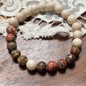 Handmade crystal bracelet / leopard skin Jasper & bone Jasper / 7” average wrist