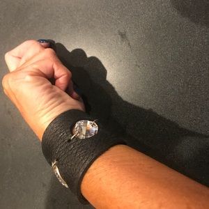 @lldustbags it’s a beauty. It’s a huge crystal. It’s some artist from California I can get u the name. It’s a bracelet I spent so much money on I felt like Wonder Woman when I put it on. It has 2 sizes. I’ll measure them both for you. It’s a super soft leather and these beautiful sparkly crystals. They look like big diamonds.