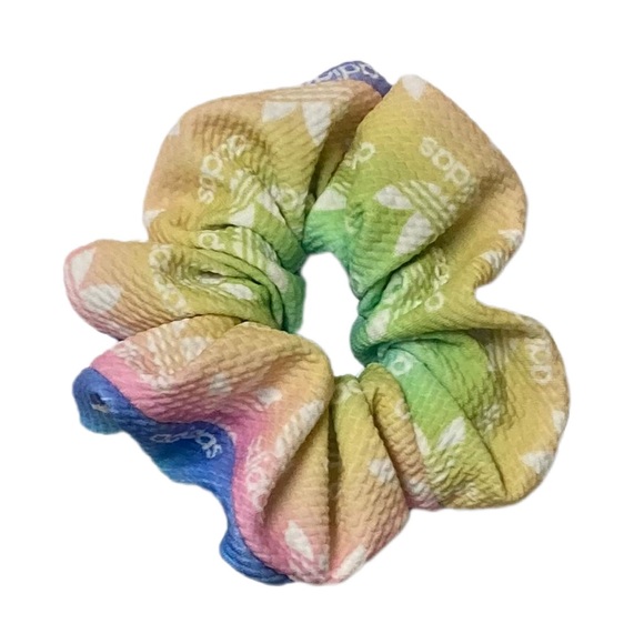 Custom multicolor design showing green, yellow and blue on one side and yellow, pink and blue on the other.