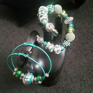 Handmade dark green themed wrap cuff bracelet set