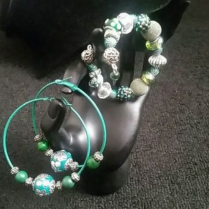 Antique stained silvertone metal with beautiful blends of green made of lampwork, rhinestone, and lnlaye clay beads to bring a refreshing twist to your outfit. Normally sells for $50, but on sale while it lasts.